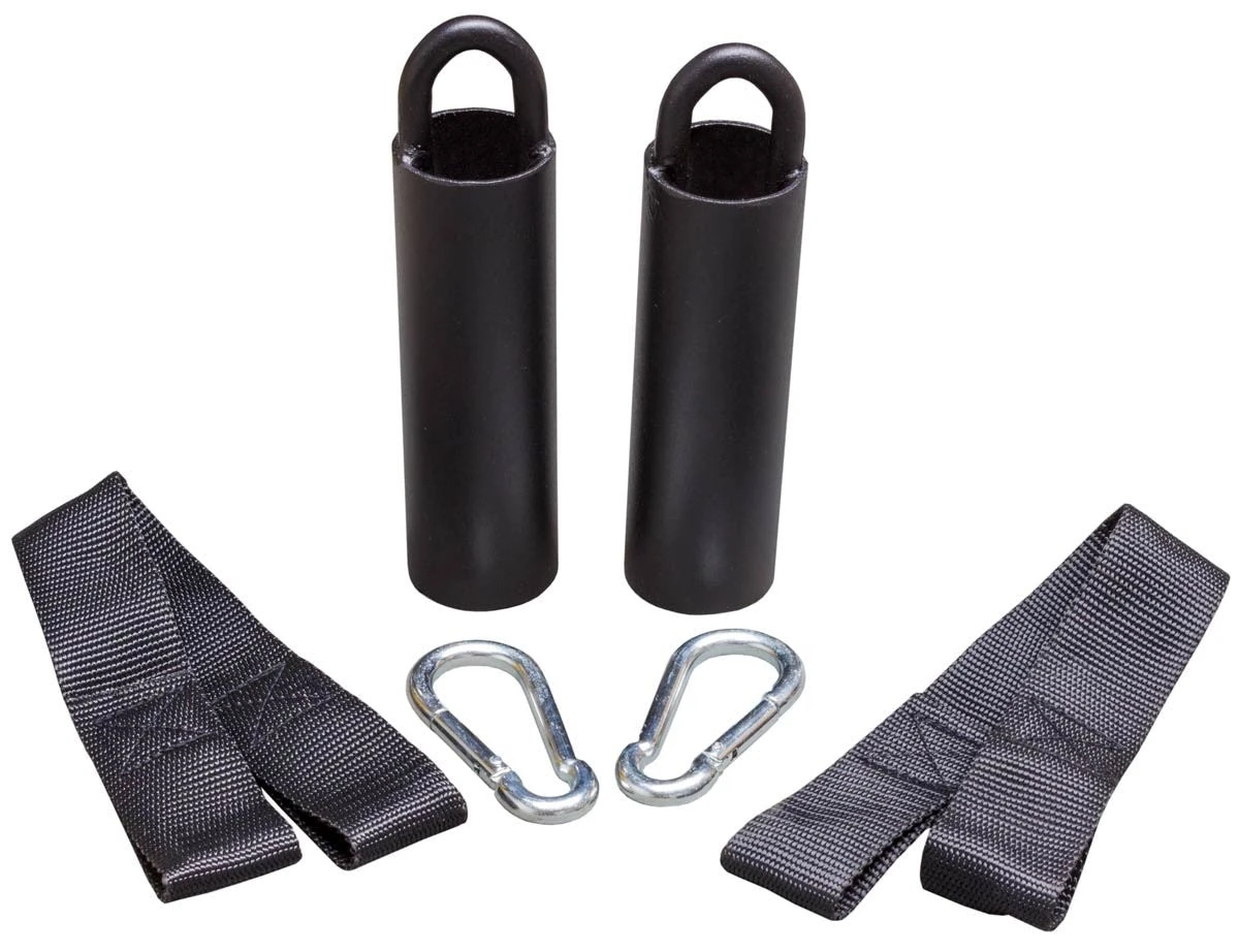 Die Griffe werden mit Karabinerhaken und 37 cm langen Gurtlaschen geliefert. Sie können schnell und unkompliziert an jeder Stange angebracht werden.